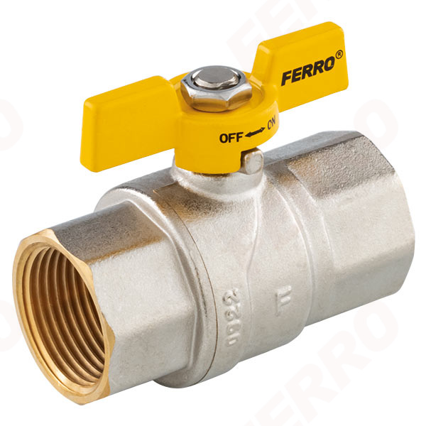 Robinet cu bilă pentru gaz cu fluture, tip G61, filet interior-interior – Ferro